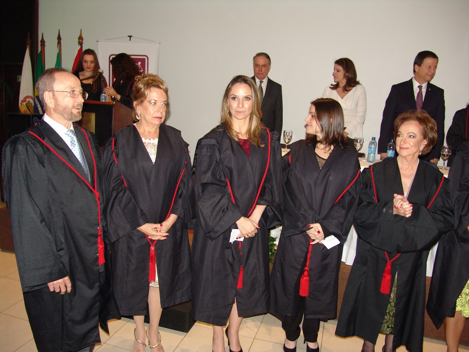 Logo depois, os vice-presidentes, Drª Lúcia Kopittke e o Dr Avelino Collet, conduziram os empossandos até a frente da Mesa Oficial, quando a Drª Liane Bestetti procedeu a leitura do Termo de Posse. Na sequência, os padrinhos e madrinhas fizeram a entrega dos diplomas aos novos associados indicados por eles: