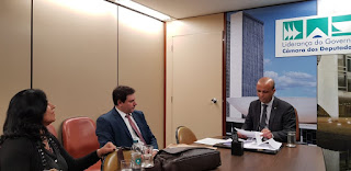 Em reunião no gabinete do Relator da Reforma da Previdência, deputado Samuel Moreira