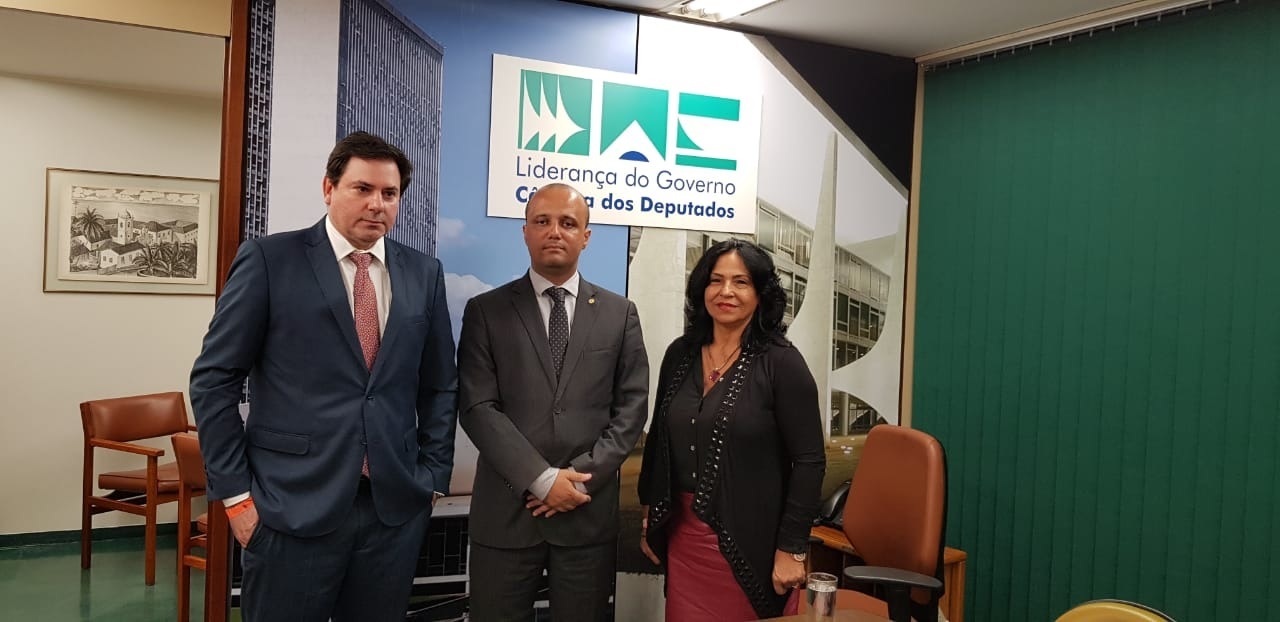 Dra Maria Isabel Pereira da Costa e Dr Éder Jorge ladeando o líder do Governo na Câmara dos Deputados, deputado Vitor Hugo