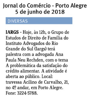 1-) Veículo: Coluna Diversas – Jornal do Comércio – Palestra Dra Ana Paula Neu Rechden Publicado em 05/06/2018 Link: 2-) Veículo: Agenda – Jornal Zero