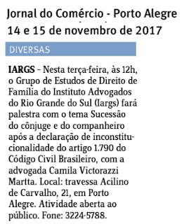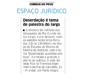 1-) Veículo: Espaço Jurídico – Jornal Correio do Povo – Palestra Drª Liane Bestetti Publicado em 05/09/2017 Link: 2-) Veículo: Coluna Diversas – Jornal do