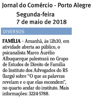 1-) Veículo: Coluna Diversos – Jornal do Comércio – Palestra Dr Marco Aurélio Albuquerque Publicado em 07/05/2018 Link: 2-) Veículo: Jornal da Lei – Jornal