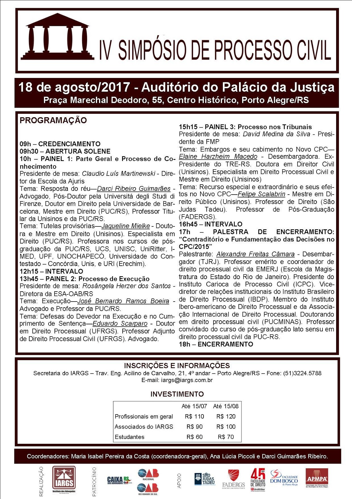 Convite- IV Simpósio de Processo Civil- 18 de agosto