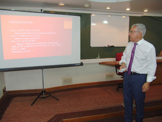 Ele informou que os crimes eleitorais, previstos no Código Eleitoral Brasileiro, estão previstos em 60 dispositivos. No Capítulo I das Disposições Penais, citou os artigos 283 e 284, referente aos efeitos penais são considerados membros e funcionários da Justiça Eleitoral e a consequente pena de detenção e reclusão. “Todo sistema penal comum é aplicado também em matéria eleitoral”, concluiu.
