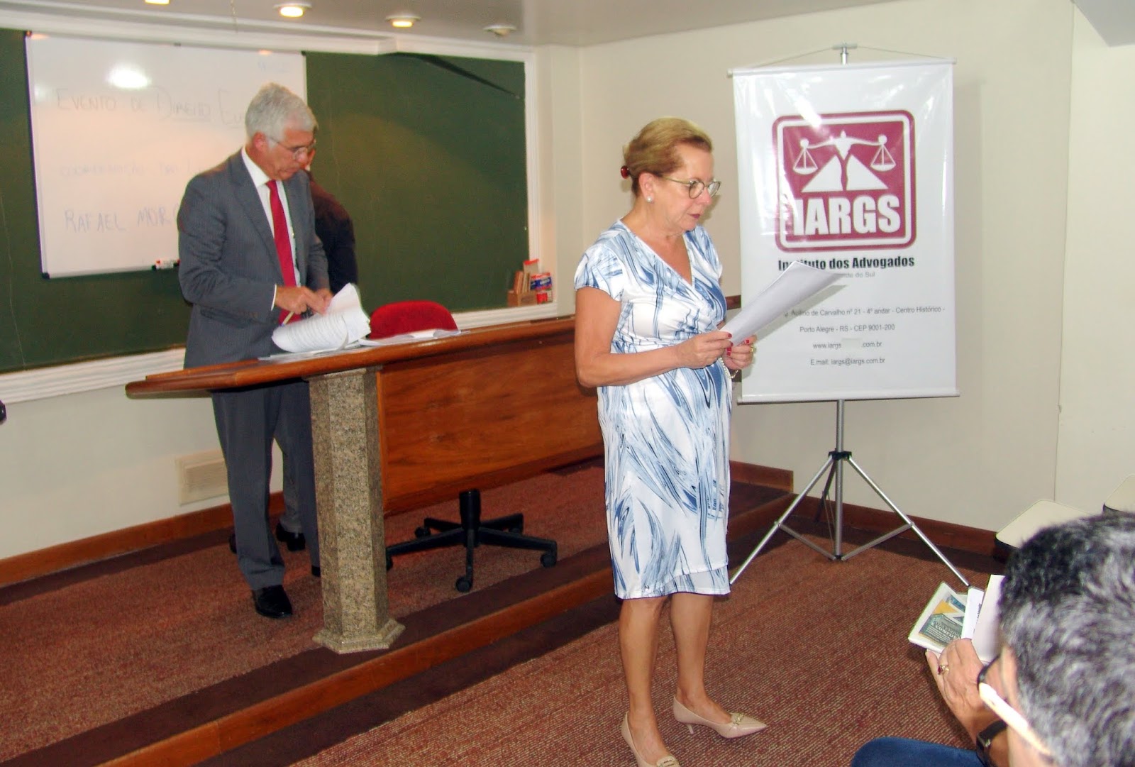 Nos dias 12 e 13 de março foi realizado o curso de Direito Eleitoral pelo Departamento de Direito Eleitoral do Instituto dos Advogados do RS, em sua sede. Para um público que lotou a sala de aula do instituto, os seis palestrantes explicaram as principais alterações e regras para as próximas eleições municipais. O evento foi aberto pela presidente do IARGS, Sulamita Santos Cabral, seguida pela coordenadora do curso, a vice-presidente Lucia Kopittke, diretora do Departamento de Direito Eleitoral do instituto.