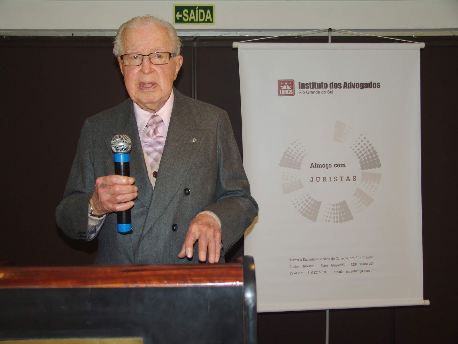 Ofício da presidente do IARGS, Sulamita Santos Cabral, cumprimentando o Decano do instituto, Dr Adalberto Alexandre Snel, pelos 67 anos de associação, na data de hoje, 22 de outubro (desde 1952). Com 92 anos de idade e 68 de advocacia, possui a OAB/RS n° 1665. Formou-se em Direito pela UFRGS em 1951. No dia 16 de agosto do ano passado, Dr Snel proferiu palestra sobre o tema “Considerações de um passado romântico”, na Reunião-Almoço do Instituto, realizado no Hotel Plaza São Rafael.