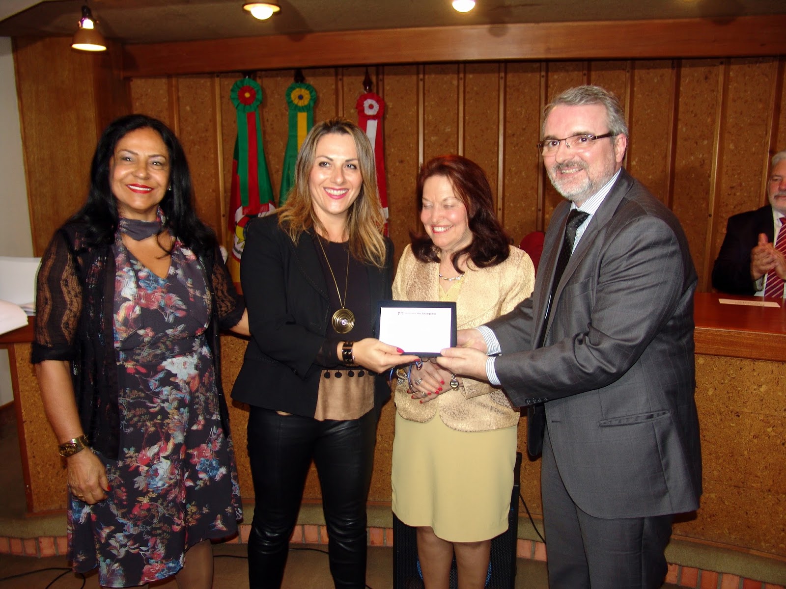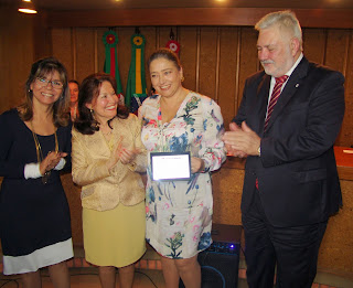 Na sequência, a diretora Ana Lucia Piccoli leu o tópico da ata da reunião de diretoria relativo à escolha dos homenageados e, logo depois, o diretor Avelino Collet fez um discurso em deferência aos homenageados.