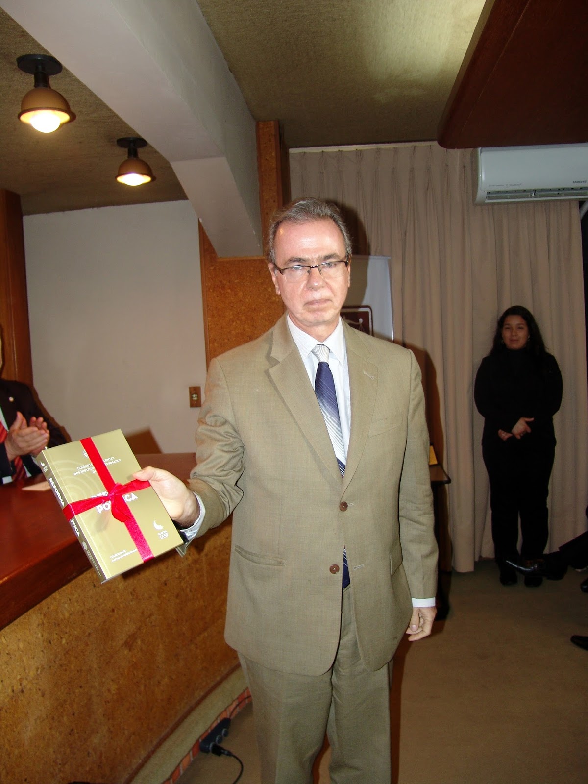 Em seguida, o evento foi marcado com a apresentação da obra “Reforma Política”, editada pelo Colégio de Presidentes dos Institutos dos Advogados do Brasil, e entregue ao advogado associado, Dr. Marcus Vinícius Martins Antunes, que colaborou com um artigo sobre Direito Constitucional, representando o IARGS.