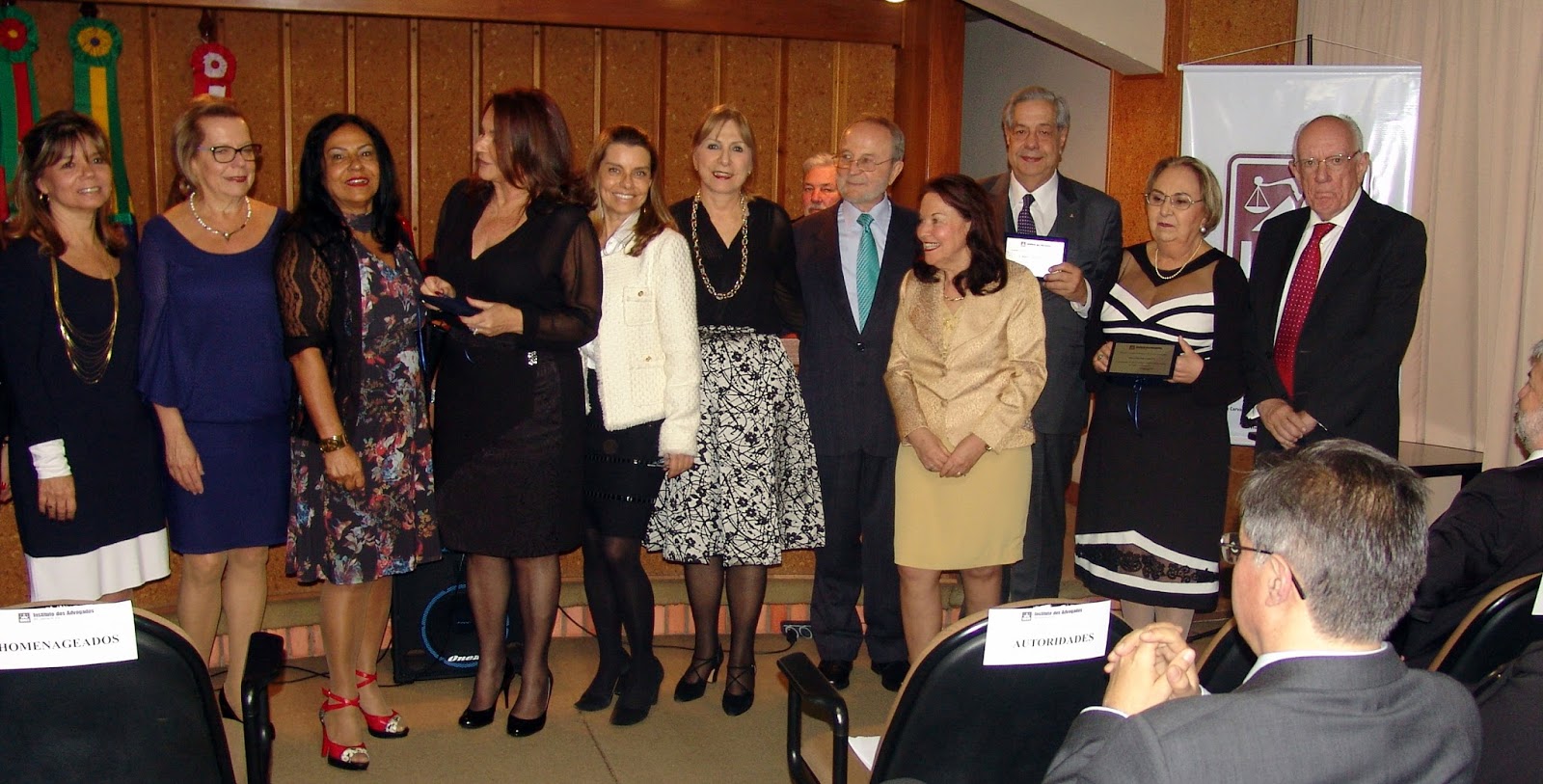 Posteriormente, foi prestada homenagem a sete associados, com a entrega de uma placa, levando em consideração a colaboração com o instituto e a atuação de destaque, por meio de seu trabalho, com contribuição à sociedade: Dra Cristiane da Costa Nery; Dr Geraldo Nogueira da Gama; Desembargador Luiz Felipe Brasil Santos; Desembargadora Luiza Dias Cassales; Desembargador Marco Aurélio Moreira de Oliveira; Dra Maria de Fátima Zachia Paludo; e Dra Rosane Marques Ramos (presidente da CAA/RS).