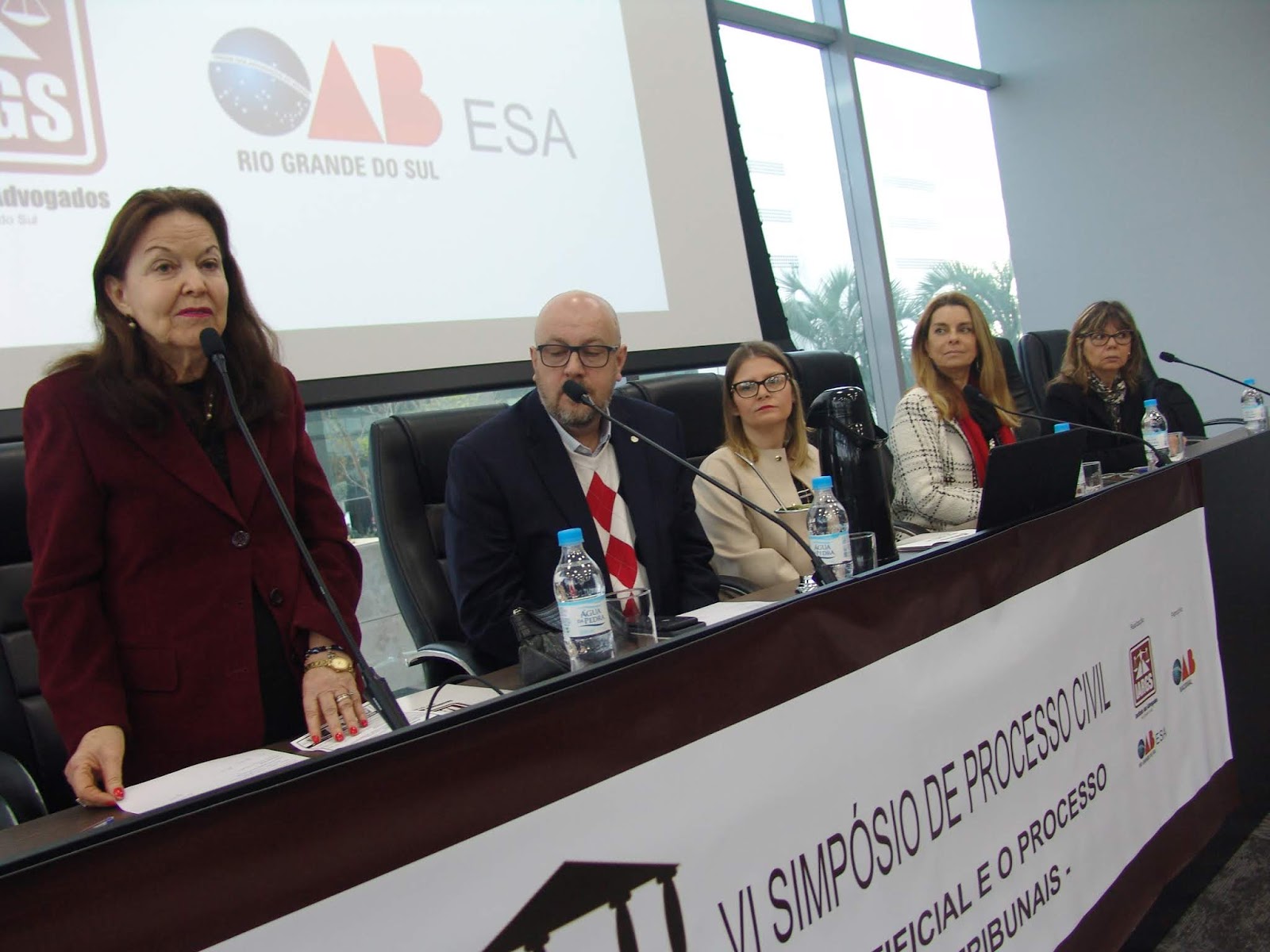 A abertura do simpósio foi feita pela presidente do IARGS, Dra Sulamita Santos Cabral, que destacou a missão histórica do instituto em promover o conhecimento jurídico e, assim, colaborar com o bom desempenho de todos os operadores do Direito, inclusive estudantes. O evento contou com a coordenação geral da diretora do Departamento de Processo Civil do IARGS, Dra Maria Isabel Pereira da Costa, junto com o vice-diretor da ESA/RS, o professor Darci Guimarães Ribeiro; e da diretora do Departamento de Integração do IARGS, Dra Ana Amélia Zanella Prates.