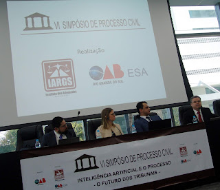 Com o tema central “Inteligência Artificial e o Processo: o Futuro dos Tribunais”, o IARGS em parceria com a ESA/RS, realizou o VI Simpósio de Processo Civil, no dia 16/08, no auditório da OAB Cubo/RS. Palestraram membros do Tribunal Regional do Trabalho, do Tribunal Regional Federal, do Tribunal de Justiça do RS e do Tribunal Regional Eleitoral, reunindo os mais importantes exemplos e conceitos em torno do tema do simpósio, divididos em dois painéis, além das preleções de abertura e de encerramento.