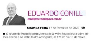 2-) Veículo: Coluna Conill – Jornal Correio do Povo – Curso de Direito Eleitoral