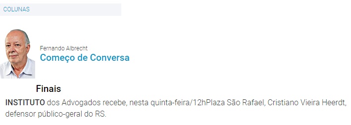 4-) Veículo: Coluna Fernando Albrecht – Jornal do Comércio (Porto Alegre/RS) – Reunião-almoço com o Defensor Cristiano Vieira Heerdt