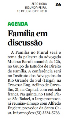 2-) Veículo: Agenda – Jornal Zero Hora – Palestra Dra Melissa Telles Barufi
