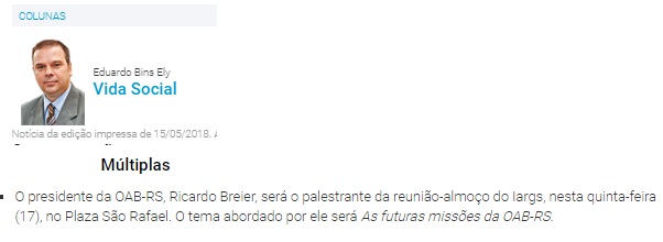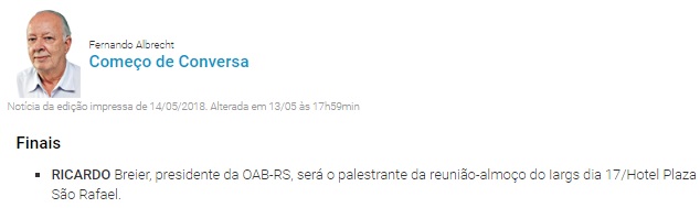 😎 Veículo: Jornal da Lei – Jornal do Comércio – Reunião-Almoço com Dr Ricardo Breier