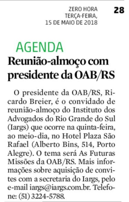 6-) Veículo: Nota Agenda – Jornal Zero Hora – Reunião-Almoço com Dr Ricardo Breier