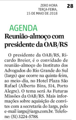 5-) Veículo: OAB/RS – Reunião-Almoço com Dr Ricardo Breier