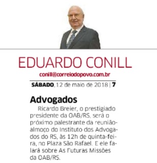 3-) Veículo: Nota Eduardo Conill – Jornal Correio do Povo – Reunião -Almoço com Dr Ricardo Breier