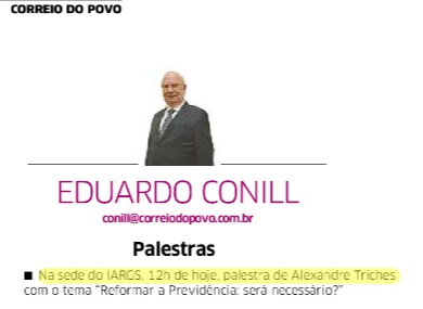 6-) Veículo: Coluna Conill – Jornal Correio do Povo (RS) – Palestra Dr Alexandre Triches