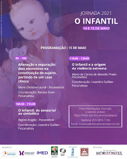 O evento é aberto para todos que desejam entrar em contato com a psicanálise. E, neste ano, com “o infantil” também. Serão ministradas seis palestras. Mais informações, envio de trabalhos e inscrições pelo telefone (51) 3019-1799 ou pelo e-mail instituto@clinicahorizontes.com.br