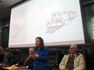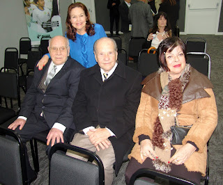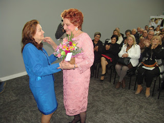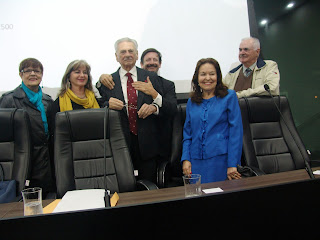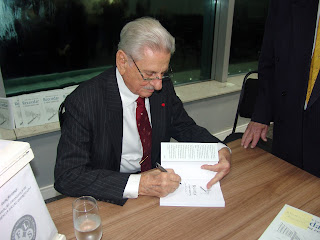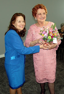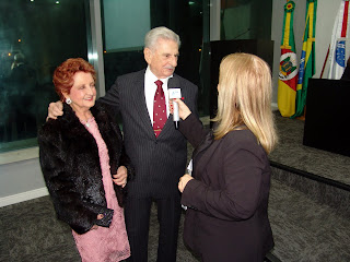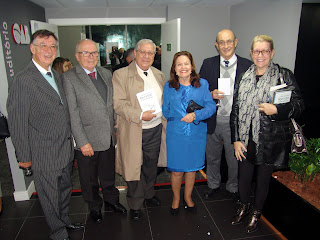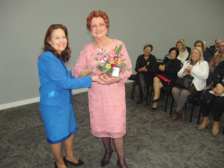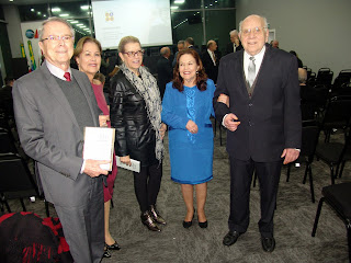Após o discurso da Dra Sulamita, salientando a importância do autor para o instituto, ela prestou uma homenagem à esposa do Dr Hélio, a sra. Nara Jobim de Azevedo, entregando um vaso de flores.