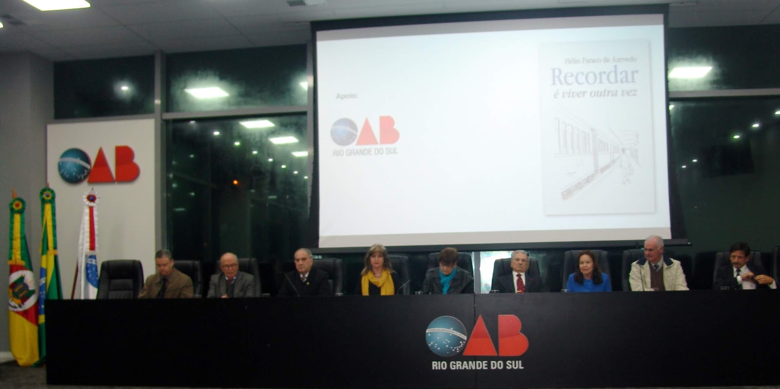 Numa parceria entre o Instituto dos Advogados do RS, a Escola Superior de Advocacia da OAB/RS (ESA/RS) e a Fundação Lions Club Distrito LD3, foi lançado o oitavo livro do advogado Hélio Faraco de Azevedo (associado eminente do IARGS), “Recordar é viver outra vez”, no dia 25/07, na OAB/Cubo, em Porto Alegre (RS), onde o autor concedeu autógrafos. A presidente do IARGS, Sulamita Santos Cabral, representou o instituto no ato e integrou a Mesa de Abertura.