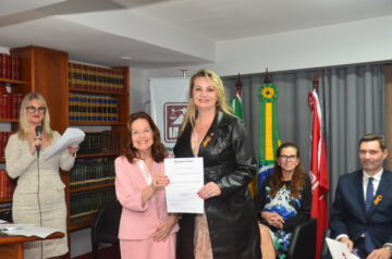 Posteriormente, foram realizadas as leituras dos currículos dos novos diretores e diretores-adjuntos do IARGS e entregues as Portarias dos Departamentos recém-criados por integrantes da diretoria e da presidente do IARGS: