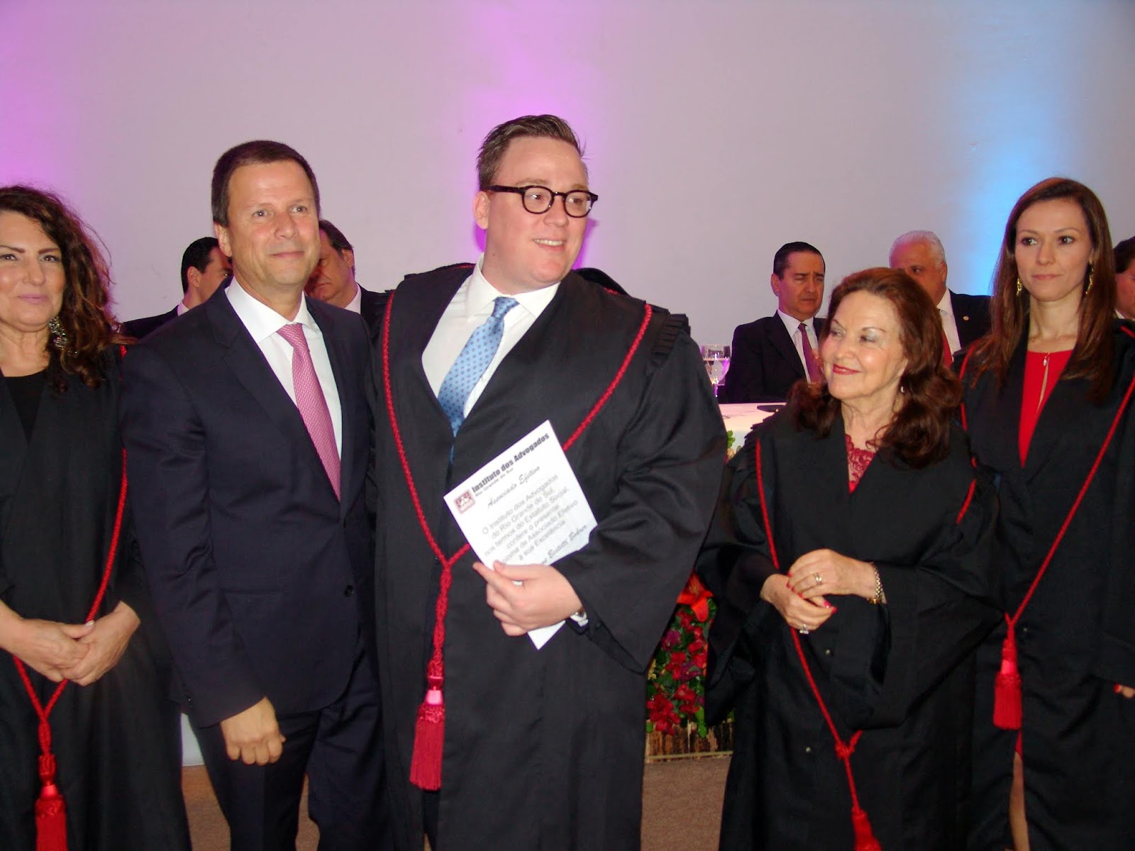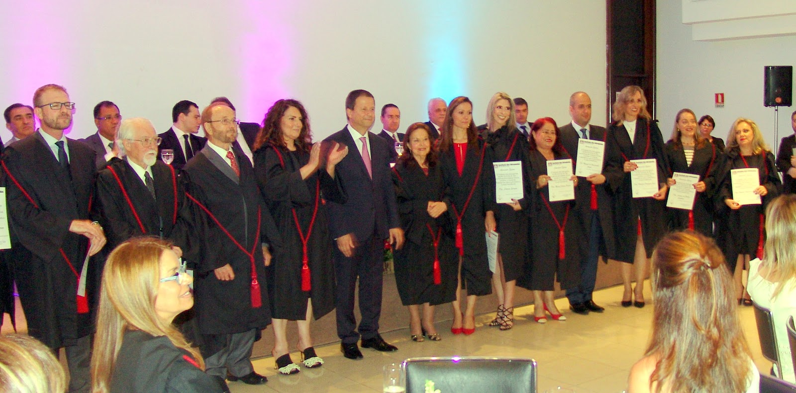 De surpresa, Dr Cláudio Lamachia entregou uma credencial especial da OAB como membro honorário vitalício aos ex-presidentes do Colégio de Presidentes dos Institutos dos Advogados: à Dra Sulamita Santos Cabral, ao Dr José Horário Halfed Rezende Ribeiro e ao Dr Álvaro Fernando da Rocha Mota.