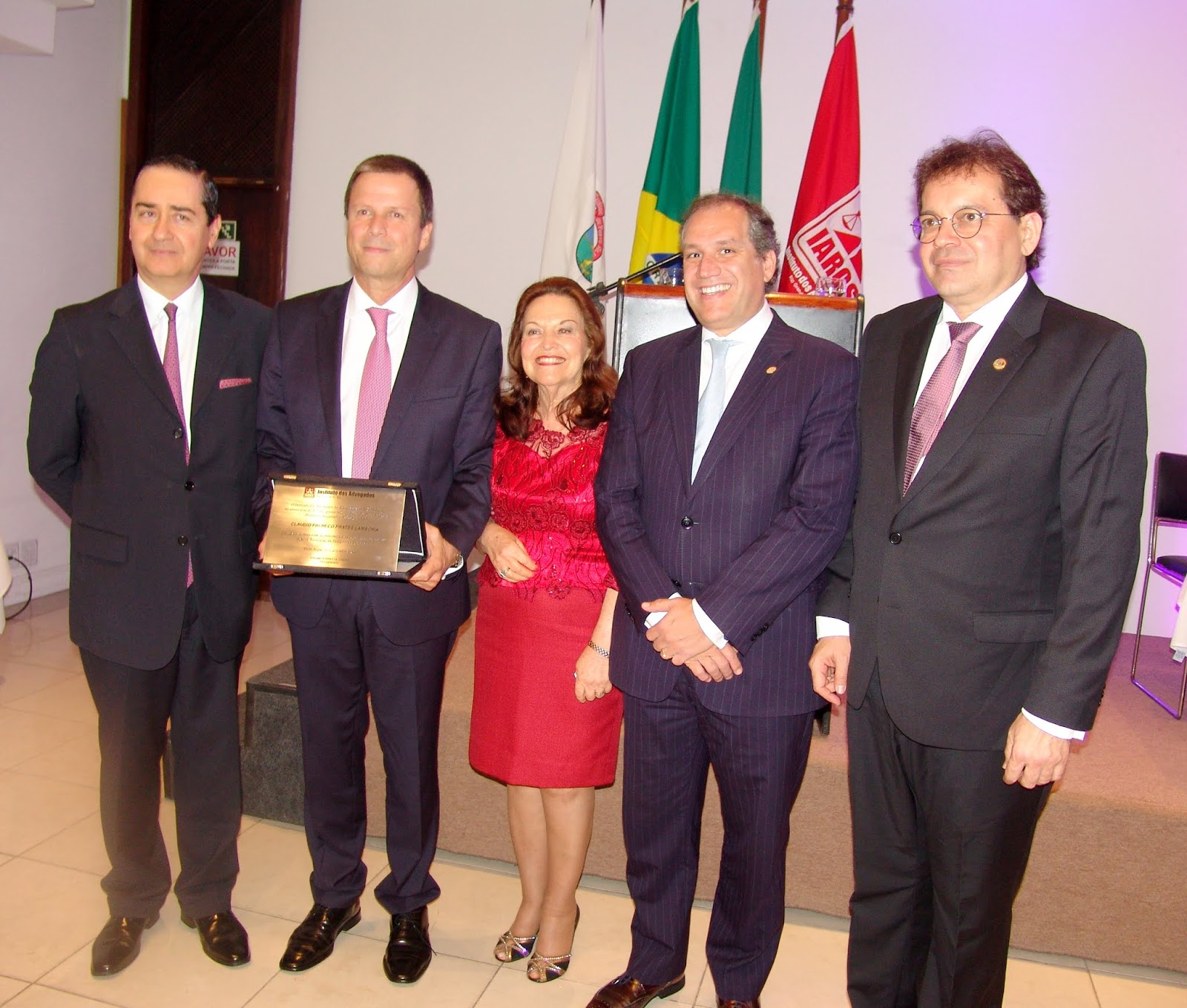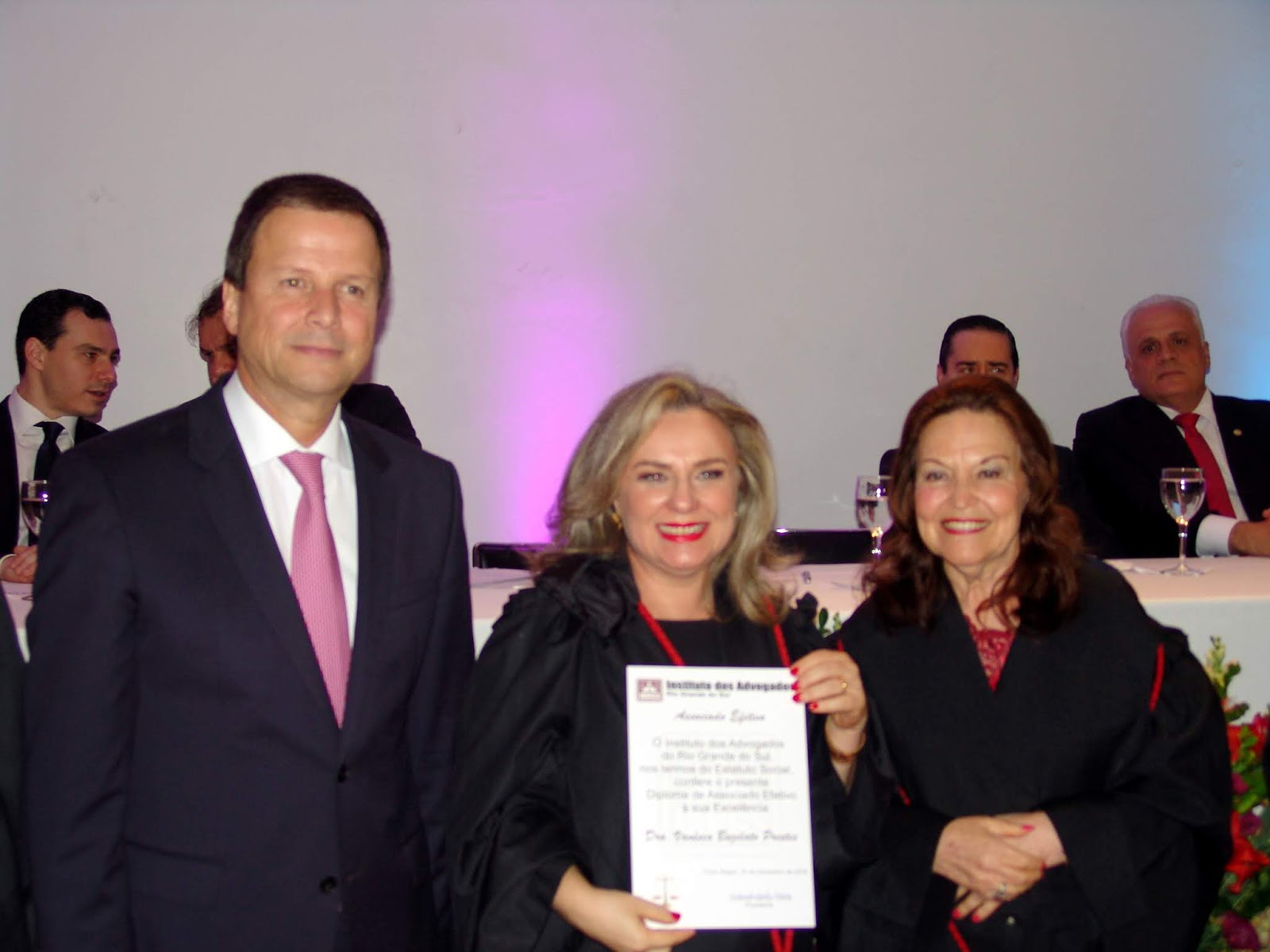 Em seguida, a Dra Sulamita, acompanhada de sua diretoria, procedeu a entrega da placa ao homenageado da noite, o Dr Claudio Pacheco Prates Lamachia. Compareceram os seguintes integrante do IARGS: Dra Alice Grecchi; Dr Avelino Collet; Dr Leonardo Lamachia; Dra Lucia Koppitk; Dra Ana Lúcia Piccoli; Dra Liane Bestetti; Dra Maria Isabel Pereira da Costa; e Dra Maria Izabel Beck.