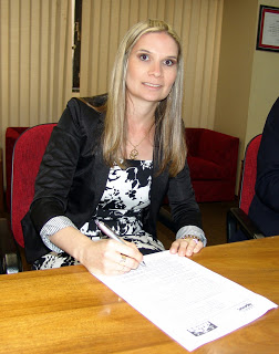 Representando a UNISC estiveram presentes os advogados Ricardo Hermani e Ana Helena Karinas Hoefel Pamplona, que assinaram o convênio como testemunhas junto com a Dra Maria Isabel Pereira da Costa.