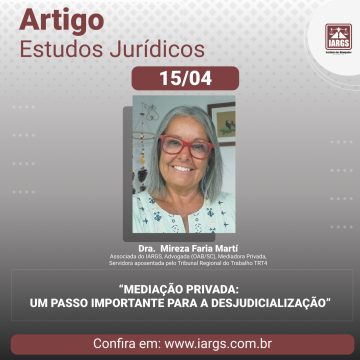 Associada do IARGS, Advogada (OAB/SC), Mediadora Privada. Servidora aposentada pelo Tribunal Regional do Trabalho TRT4
