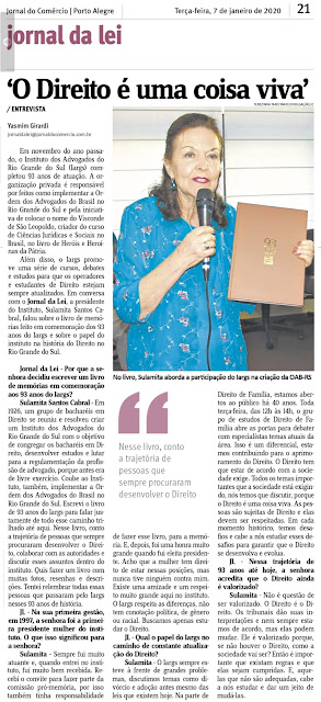 Entrevista concedida ao Caderno Jornal da Lei do Jornal do Comércio referente à edição e ao lançamento do livro histórico do IARGS 93 anos, na