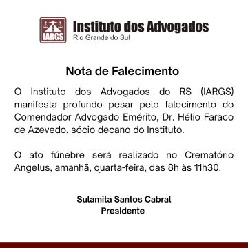 O Instituto dos Advogados do Rio Grande do Sul (IARGS) torna pública a carta de despedida, redigida em 24 de março de 2016, pelo seu