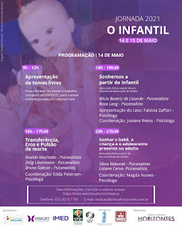 A Jornada 2021 O Infantil, promovida pela Clínica Horizontes e com o apoio institucional do IARGS, será realizada de forma on-line, nos dias 14 e