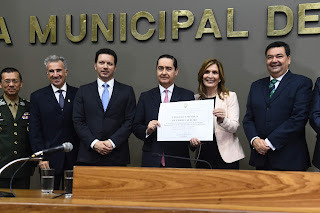A presidente do IARGS, Sulamita Santos |Cabral, compareceu à solenidade de entrega do título de Cidadão Emérito de Porto Alegre ao desembargador federal Carlos Eduardo