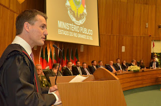 A presidente do IARGS, Sulamita Santo Cabral, compareceu à posse do novo procurador-geral de Justiça, Dr. Fabiano Dallazen, realizada no dia 07/06, no auditório Mondercil