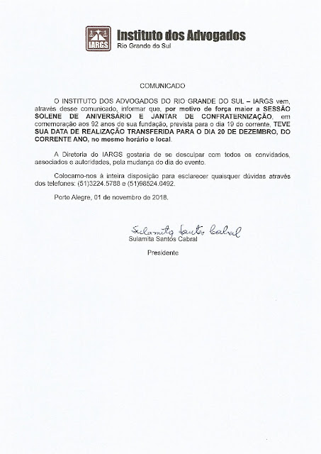 Segue abaixo link do programa “Momento Jurídico” que fez a cobertura da Reunião-Almoço do IARGS, em 18 de outubro, com a Desembargora Maria Berenice Dias.