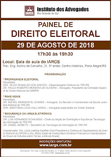 Com a proximidade das eleições majoritárias e proporcionais, o Instituto dos Advogados do RS realizará nesta quarta-feira, dia 29 de agosto, um Painel de Direito