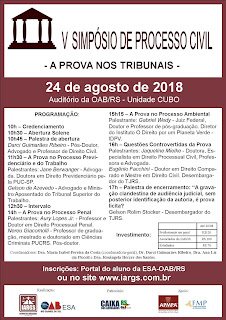 O V Simpósio de Processo Civil, promovido pelo IARGS (Instituto dos Advogados do RS) e pela ESA-OAB/RS, será realizado no próximo dia 24 de agosto,