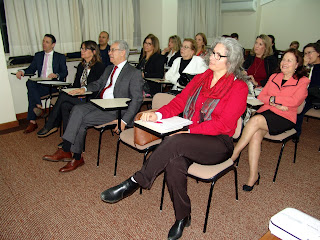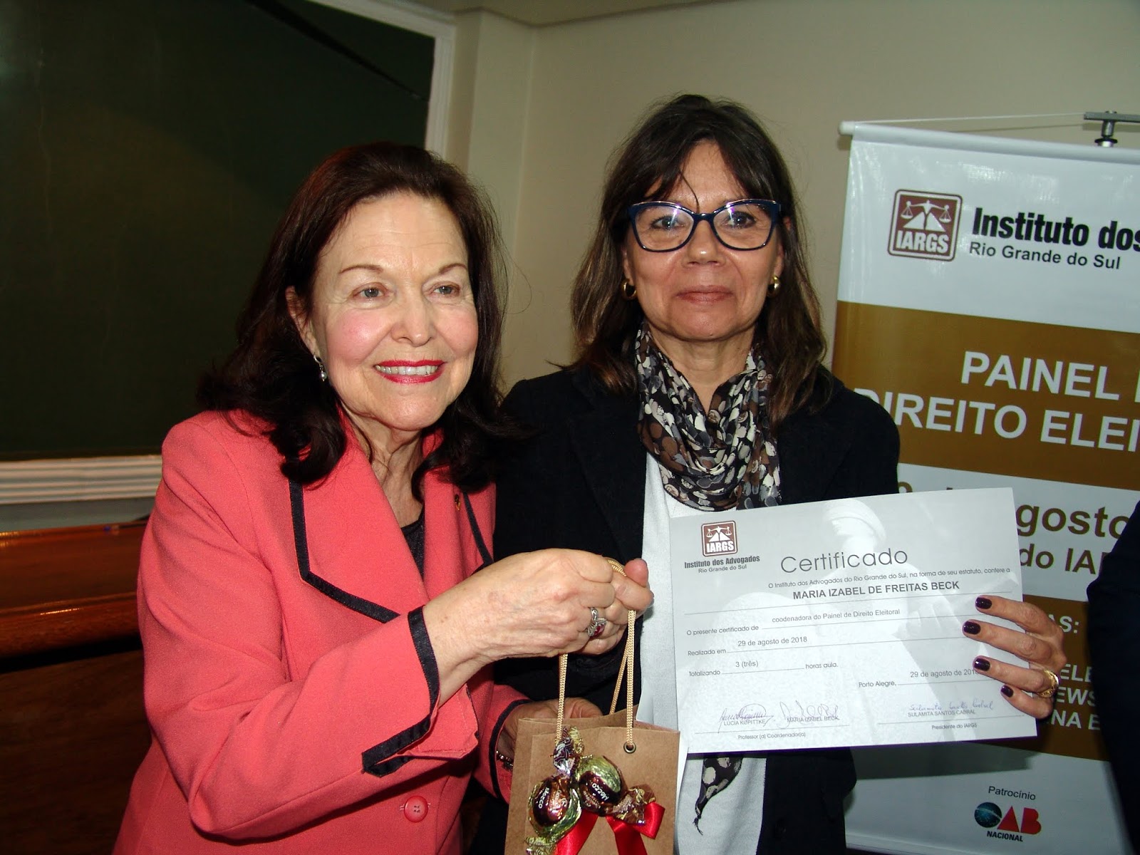 O IARGS promoveu ontem, dia 29/08, o Painel de Direito Eleitoral a fim de possibilitar aos associados e público em geral informações atualizadas sobre as novas regras relacionadas ao próximo pleito, a ser realizado em outubro. O evento foi aberto pela presidente do instituto, Sulamita Santos Cabral, que saudou a todos no quinto andar da sede. Em seguida, a coordenadora do evento, a Dra Maria Izabel de Freitas Beck (diretora-adjunta financeira) procedeu a apresentação de cada palestrante. A vice-presidente do IARGS, Lucia Kopittke, também coordenou o painel.
