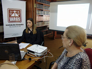 Dentro do grupo de palestrantes estreantes neste ano no Grupo de Estudos de Direito de Família do IARGS, hoje, dia 1º/10, foi a vez da advogada Louise Garcia Spencer, que escolheu como tema “A (im) possibilidade de prisão na execução de alimentos indenizatórios”. A preleção foi prestigiada pela vice-presidente do IARGS, Lucia Kopittke, e pelas diretoras Liane Bestetti e Ana Lúcia Piccoli.