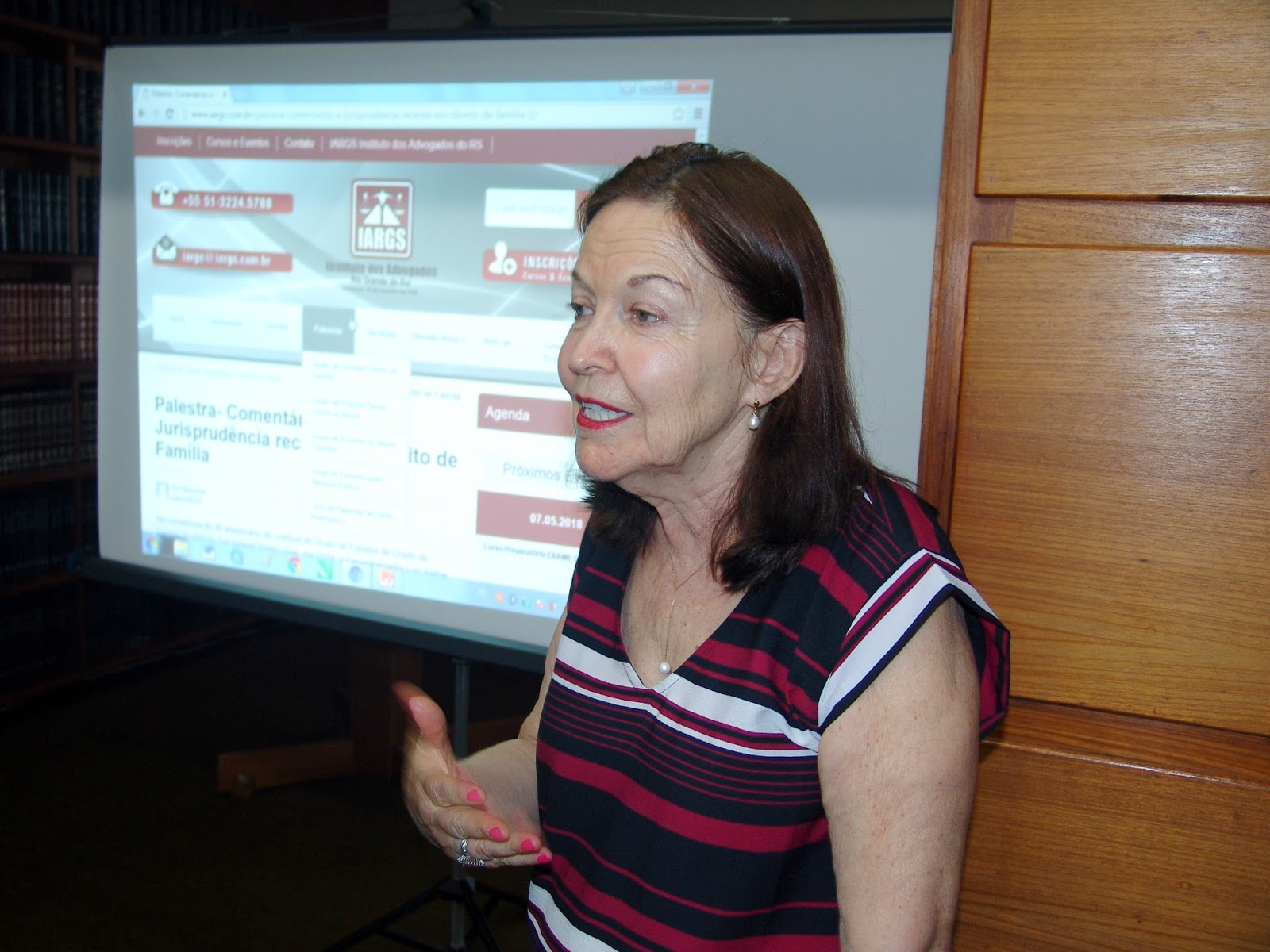 A psicóloga clínica Sonia Martins Sebenelo, especialista em Psicoterapia Individual, Casal e Família, foi a palestrante do Grupo de Estudos de Direito de Família de hoje, dia 24/04, do IARGS, abordando o tema “A Mulher na Pós Modernidade – o que está em jogo – militância feminista ou feminismo de viés psicológico”, sendo recepcionada pela presidente do instituto, Sulamita Santos Cabral. Após sua exposição foi promovido um debate sobre a pauta em questão.