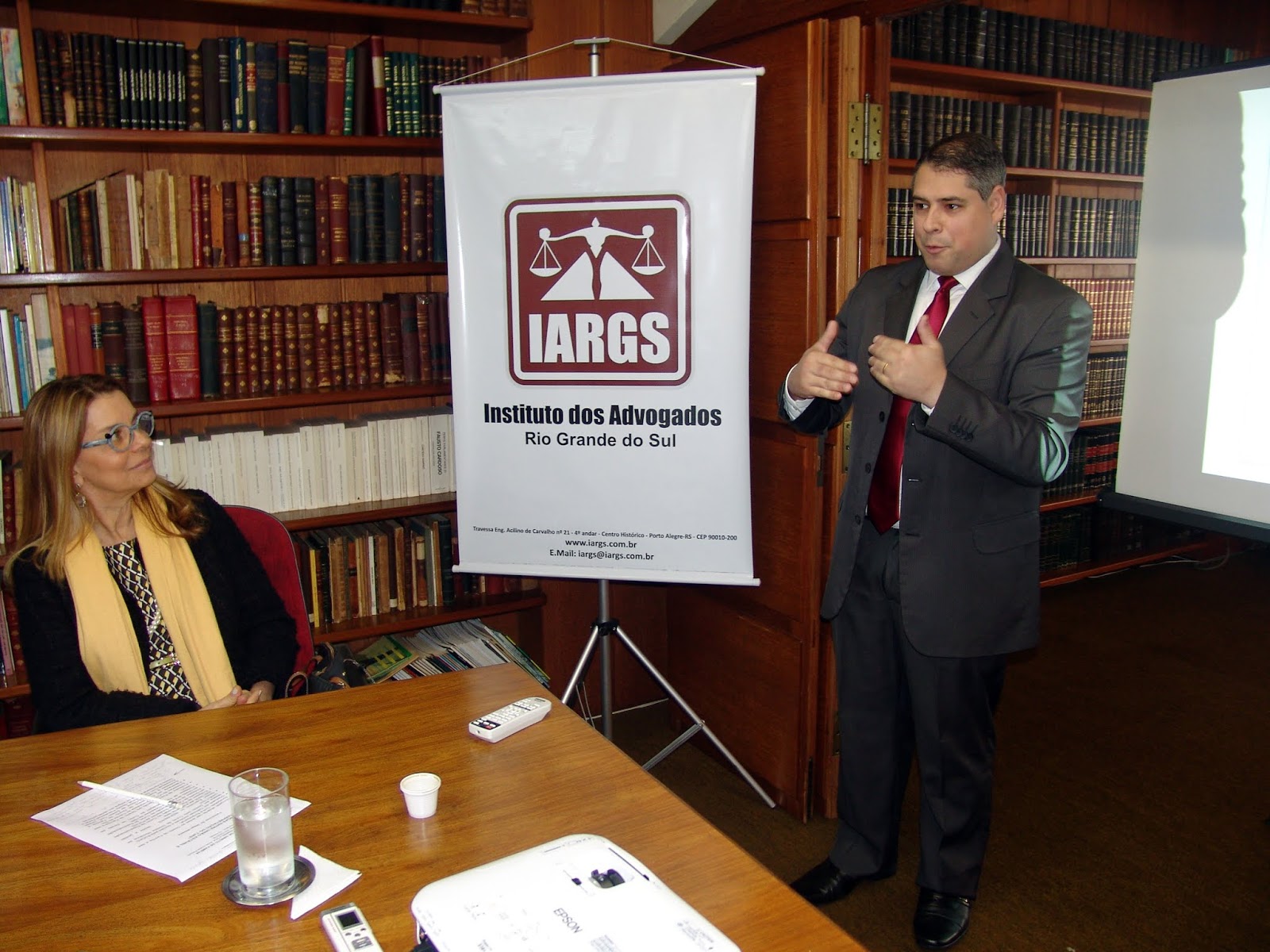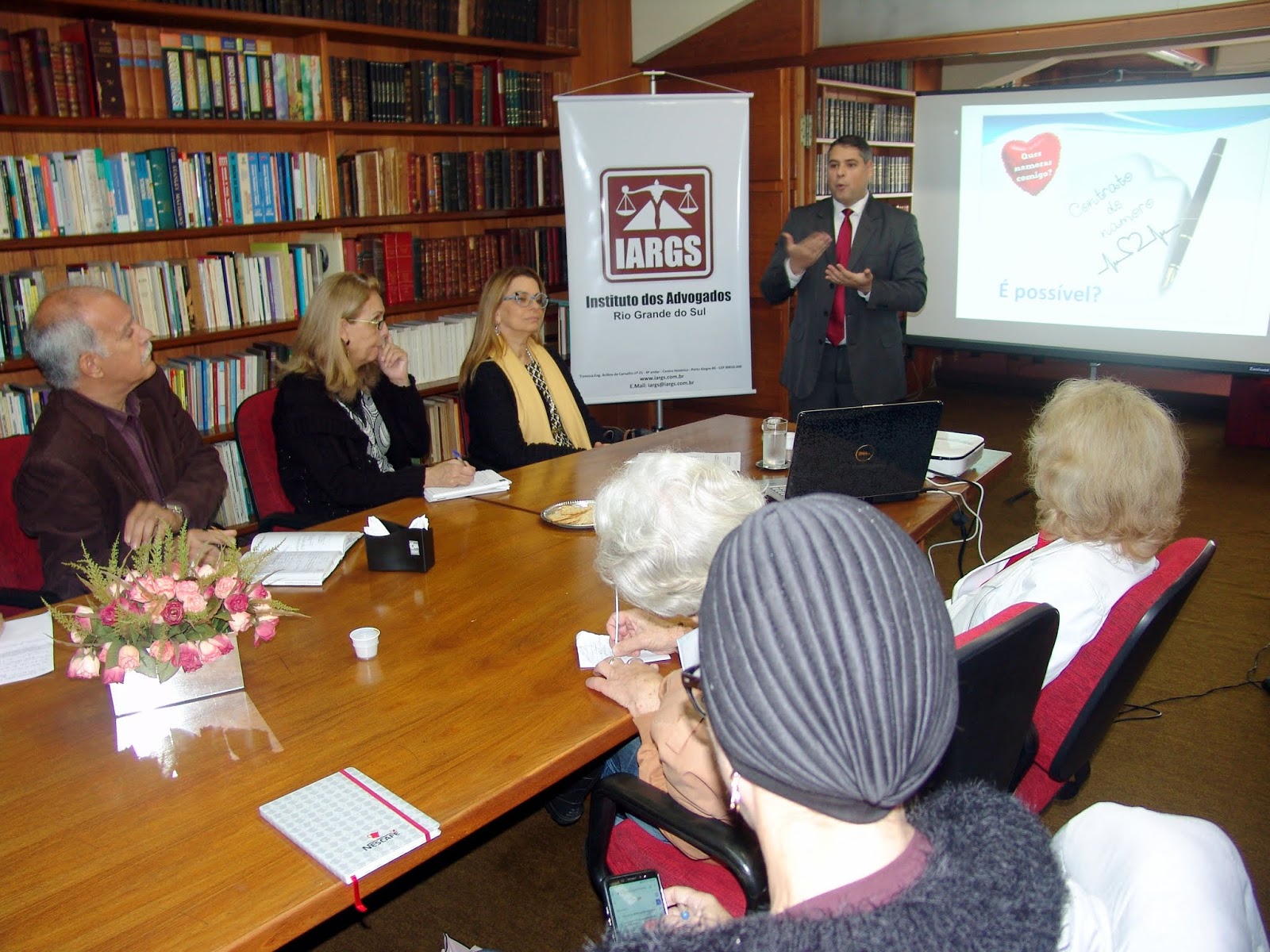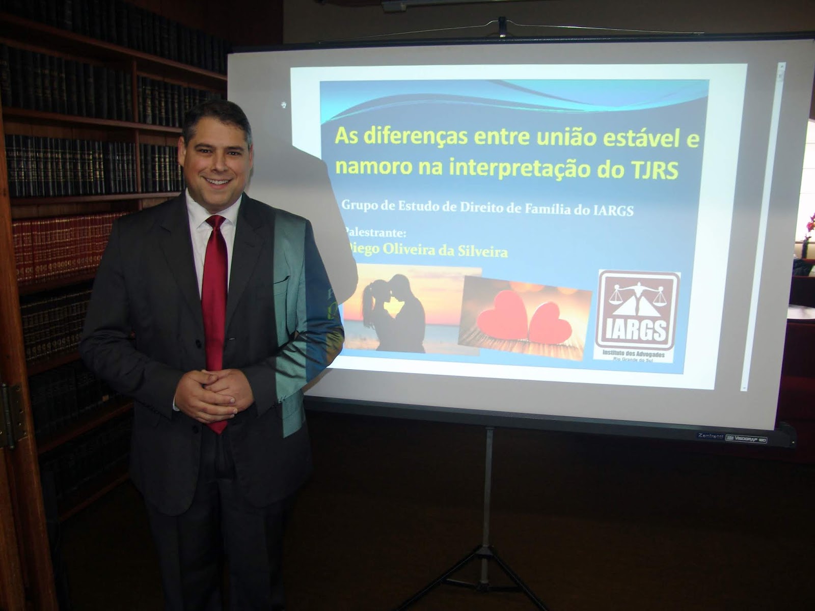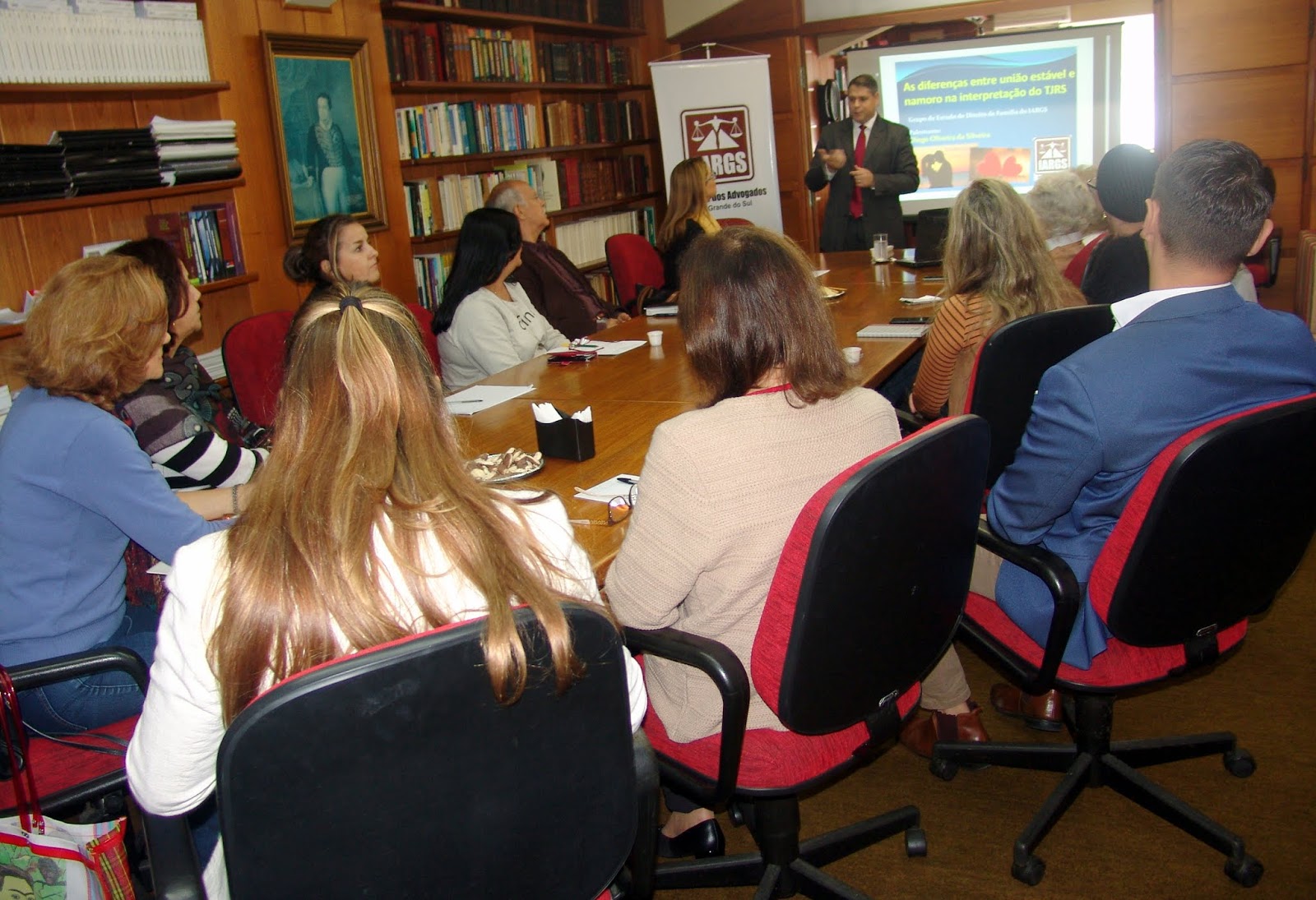 “As diferenças entre união estável e namoro na interpretação do TJRS” foi o tema da palestra proferida pelo advogado Diego Silveira, também estreante no Grupo de Estudos de Doreito de Família do IARGS, hoje, dia 22/10, sendo recepcionado pela diretora Ana Lúcia Piccoli.