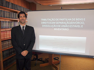 O advogado Roberto Medaglia Marroni Neto, diretor-adjunto do Departamento de Direito Tributário do IARGS, concedeu, no dia de hoje (03/10), mais uma vez, a pedido da coordenação do Grupo de Estudos de Direito de Família, a palestra sobre o tema “Tributação de partilha de bens e direitos em separação judicial/divórcio, dissolução de união estável e inventário”.
