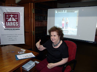 Com o tema “Ataques à figura feminina, da família aos tribunais”, a psicóloga, especialista em Psicologia Clínica e Jurídica, Drª Ivone Coelho, palestrou hoje, dia 20/03, no Grupo de Estudos de Direito de Família do IARGS, sendo recepcionada pela diretora e advogada Liane Bestetti. Dra Ivone fez referências sobre ataques à feminilidade, apesar da proteção das “leis evoluídas da atualidade”. Fez reflexões sobre a evolução psíquica da feminilidade e as repercussões que impregnam sua convivência no grupo familiar e sua representatividade social, até as intervenções jurídicas. Ao final da preleção promoveu um debate entre os participantes. Entre eles, prestigiaram a palestra as Desembargadoras Maria Berenice Dias e Elaine Harzheim Macedo.