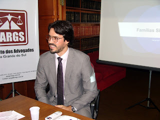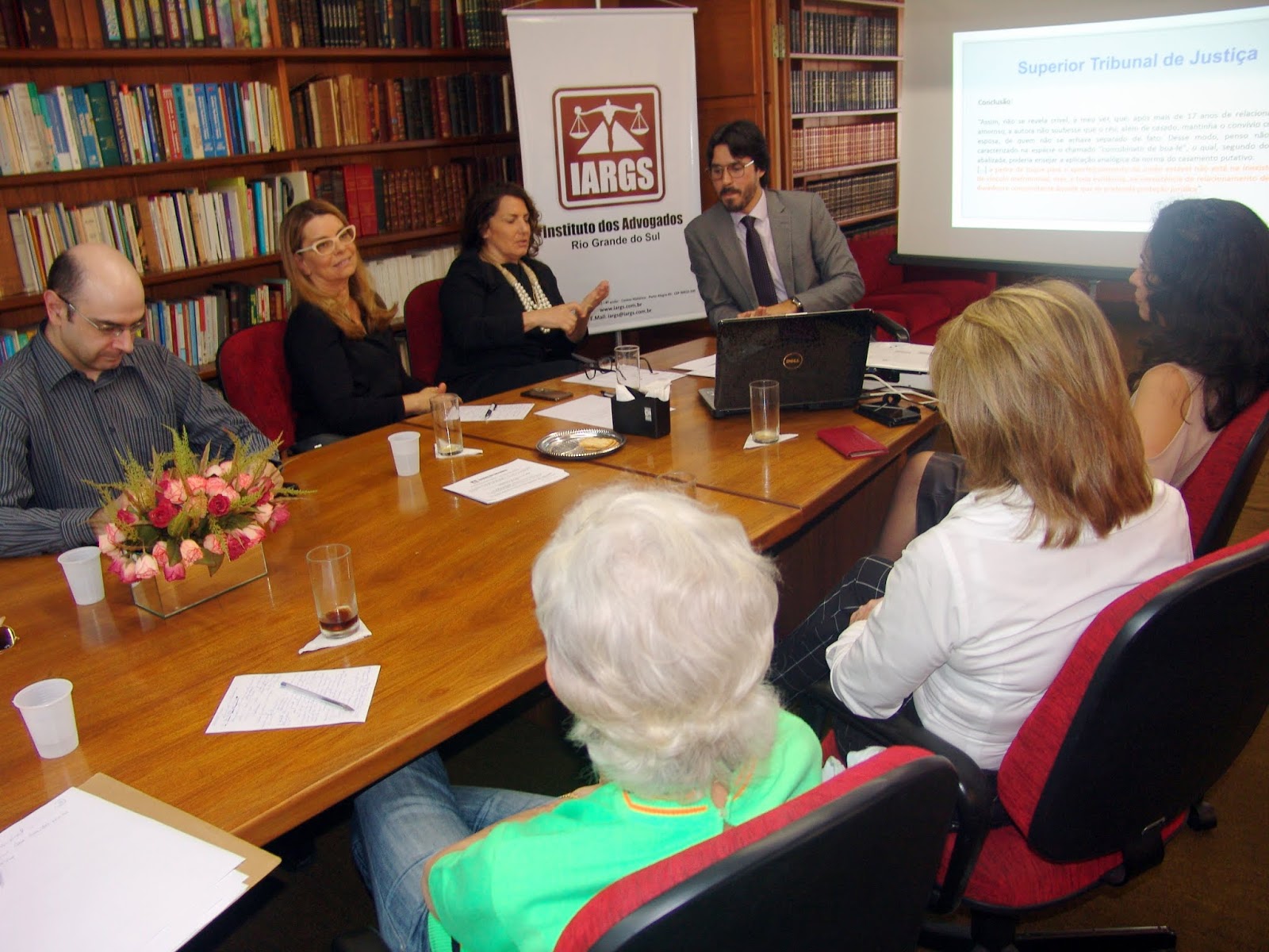 “Famílias Simultâneas, novas abordagens” foi o tema escolhido pelo advogado Daniel Alt da Silva para palestrar no Grupo de Estudos de Direito de Família do IARGS, hoje, dia 12/11, sendo recepcionado pelas diretoras Liane Bestetti e Ana Lúcia Piccoli. O tópico escolhido pelo advogado foi tema de sua dissertação de Mestrado, que acabou se tornando um livro.