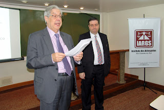 Por duas horas, o advogado Gustavo Rocha palestrou no IARGS sobre o tema “Gestão de Escritórios e Marketing”, hoje, dia 28/11, sob a coordenação do Dr Geraldo Nogueira da Gama, diretor do Departamento de Seguros e Previdência no instituto.