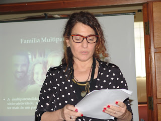 Dentro do contexto família, sendo o “núcleo de pessoas unidas por laços afetivos”, a advogada informou que existem, atualmente, seis constituições reconhecidas: família matrimonial, família monoparental, família extensa ou ampliada, família anaparental, família homoafetiva e família multiparental.