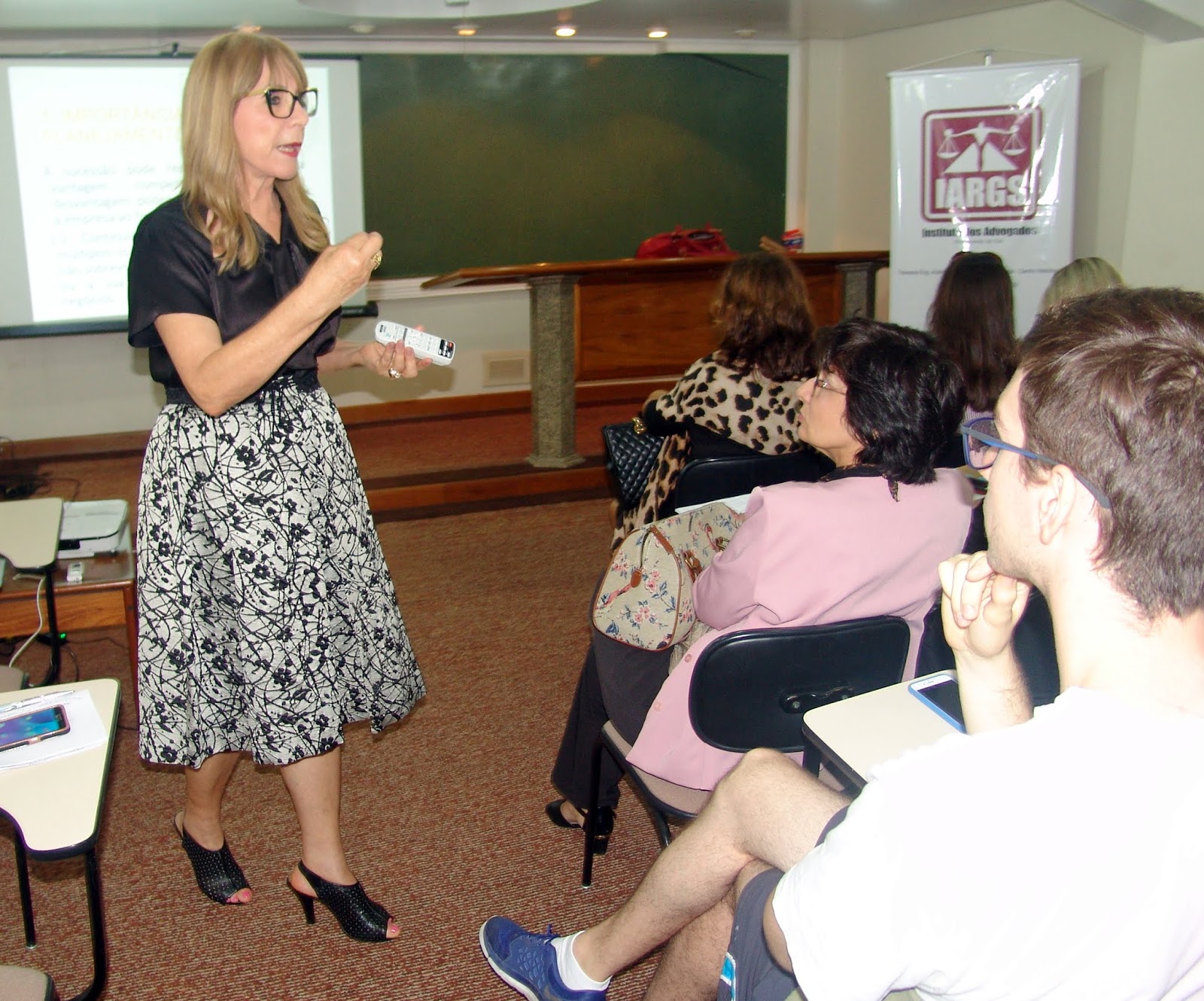 A vice-presidente do IARGS, Alice Grecchi, foi a convidada de hoje, dia 07/05, para participar do Grupo de Estudos de Direito de Família do instituto com o tema “Planejamento Estratégico/Tributação”, sendo recebida pela diretora Liane Bestetti.