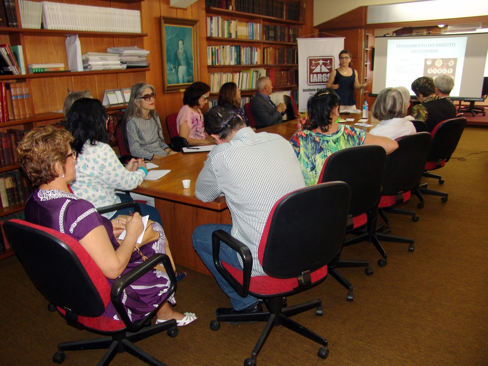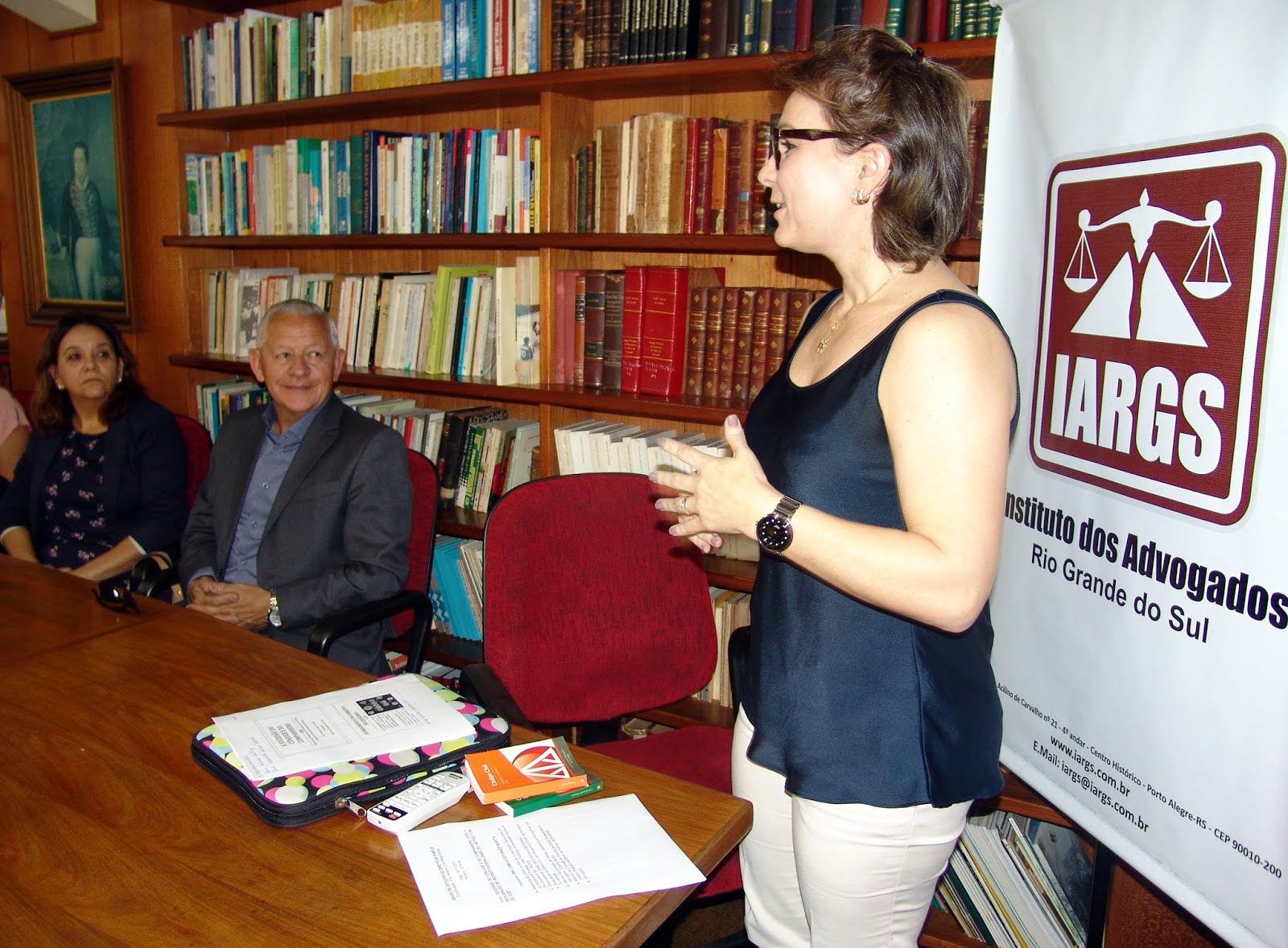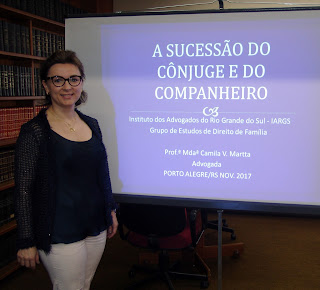 A advogada Camila Victorazzi Martta, especialista em Direito das Famílias e Sucessões, fez sua estréia, no dia 14/11, no Grupo de Estudos de Direito de Família do IARGS com a palestra “Sucessão do cônjuge e do companheiro após a declaração de inconstitucionalidade do artigo 1.790 do CCB”. A recepção foi feita pela presidente do instituto, Sulamita Santos Cabral, no encerramento das atividades do grupo neste ano.